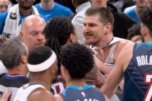 坏!多特撞翻约基奇二级恶犯被驱逐 约基奇凶相外露与杰林威纠缠