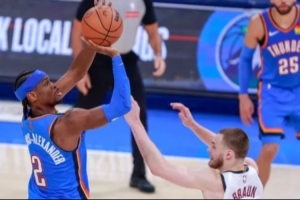 今天掘金最要命的是:即便亚历山大、杰威和切特都不在,雷霆也能靠五外阵和掘金周旋。掘金因为约基奇(和瓦兰休纳斯)的存在,无法换防,沉退则挨投,单防则亚历山大戏耍布劳恩;后半段夹击持球人则只能靠轮转:于是杰林·威廉姆斯第四节前半节就9分。